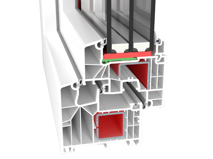 Okna te są stworzone na bazie systemu Ideal 8000 w którym położono duży nacisk na redukcję parametrów cieplnych. Możliwe było to dzięki zwiększeniu w tym systemie głębokości zabudowy profili do 85mm, sześciokomorowej budowie kształtowników oraz systemowi trzech uszczelek. Okna wyposażone są w standardzie w pakiet trzyszybowy o szerokości 48 mm. Zastosowany potrójny zestaw uszczelek poza polepszeniem termiki okien wpływa również na poprawę ich izolacyjności akustycznej. Dzięki wydzieleniu przez trzecią uszczelkę tzw. suchej komory w której pracują okucia, zwiększa się natomiast żywotność i trwałość mechanizmów okuciowych. Okna Ideal 8000 w kolorze białym wyposażone są w szarą uszczelkę, a w oknach okleinowanych w uszczelkę czarną.